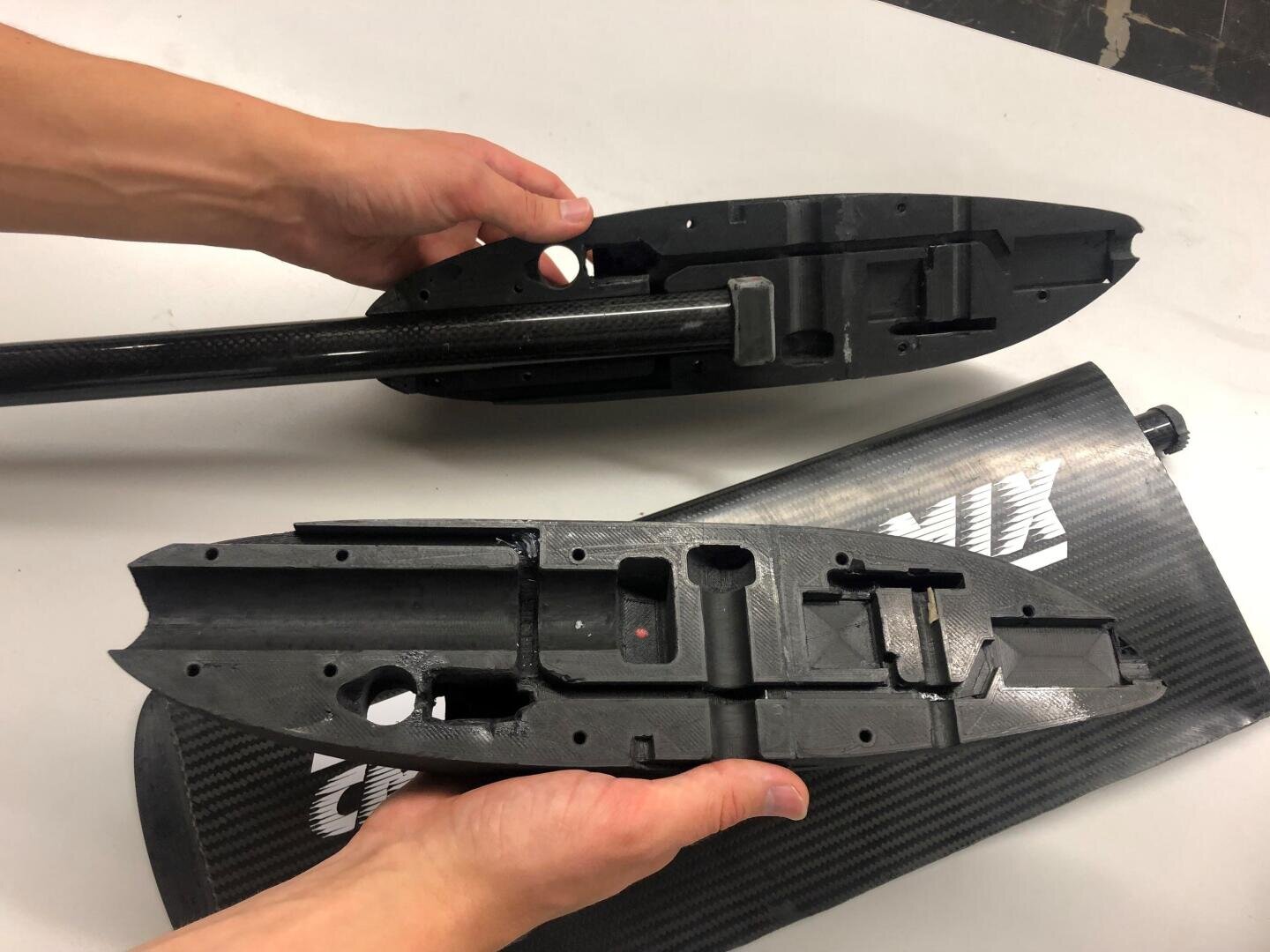 Karbon verstärkte PET mit 15 % Faseranteil verleiht den Segelflieger von ftero die nötige Steifigkeit und Festigkeit. Dank interner Wabenstruktur konnte das Gewicht auf ein Optimum reduziert werden. Gedruckt auf einem Ultimaker S5 mit dem Material Ultrafuse PET CF 15 von BASF.