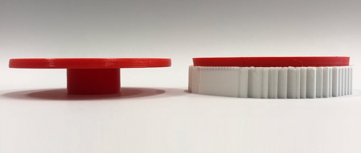 Bauteile, deren Geometrie Überhänge grösser als 45° aufweisen, erfordern Stützstrukturen, wenn sie im FDM-Verfahren hergestellt werden. Dies bedeutet einerseits ein Mehrverbrauch an Filament, längere Druckzeiten, einen zusätzlichen Aufwand zum Entfernen des Stützmaterials und schlechtere Oberflächenqualität. Wird kein Stützmaterial benötigt, kann je nach Geometrie bis zu 50% Material und ebenso viel Druckzeit eingespart werden.